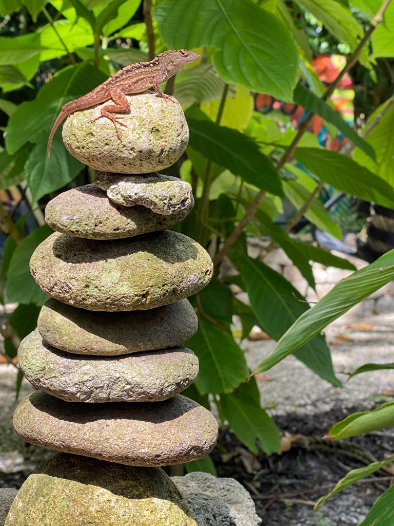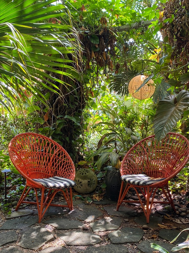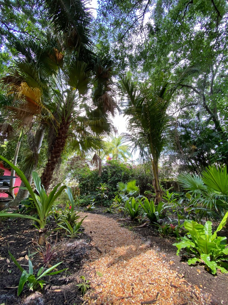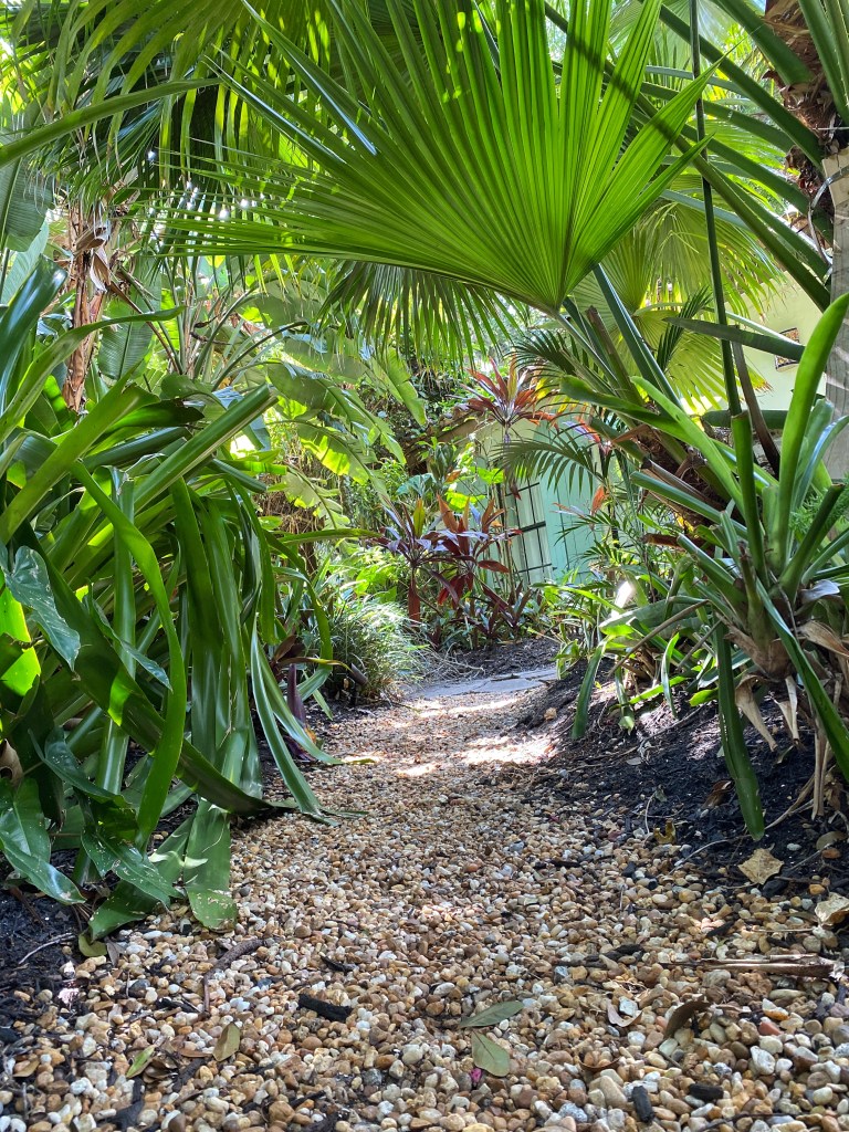 If you think you might seriously consider a trip to the Coconut Casita, I would encourage you to stop reading right now and wait to experience all the wonder of the place in person…but if you don’t like to be told what to do, read on! LOL. Either way, you’ll be amazed when you see it for yourself! I was mesmerized as soon as I walked in the door. The Casita is gorgeous. So tropical, so exotic. I’ve never seen a place like it. There were gigantic leaves from tropical plants in vases everywhere. The natural light and the unique decorating make it a truly special place. If you want to see the house, look it up online: Coconut Casita Vero Beach. I’m focusing on the garden here, mainly because I’m not looking to write a book-length blog π