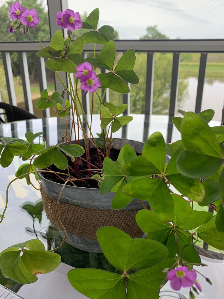 One of my very favorite plants is this oxalis. My friend Desiree gave it to me after I’d been searching for one for months. It basically looks like huge clovers and when the breeze blows through, they flutter like butterflies. Magical. And look at those darling little blossoms.