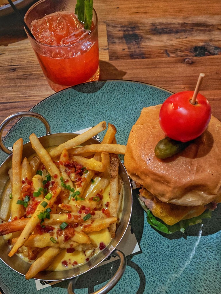 But the food…{swoon.} We went to Southern Social twice, and that’s saying something in a place that has as many good options as Vero Beach. The first night, B had a burger and loaded fries (he adored both) and I had short rib poutine loaded fries topped with a fried egg. I would have been very tempted to order that again, but it was such a big portion I only ate half of it, and I HATE wasting food.