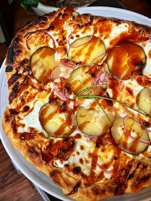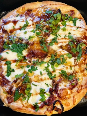 Fresh mozzarella/Dill pickle/Prosciutto/Red onion/Chive/Barbeque drizzle